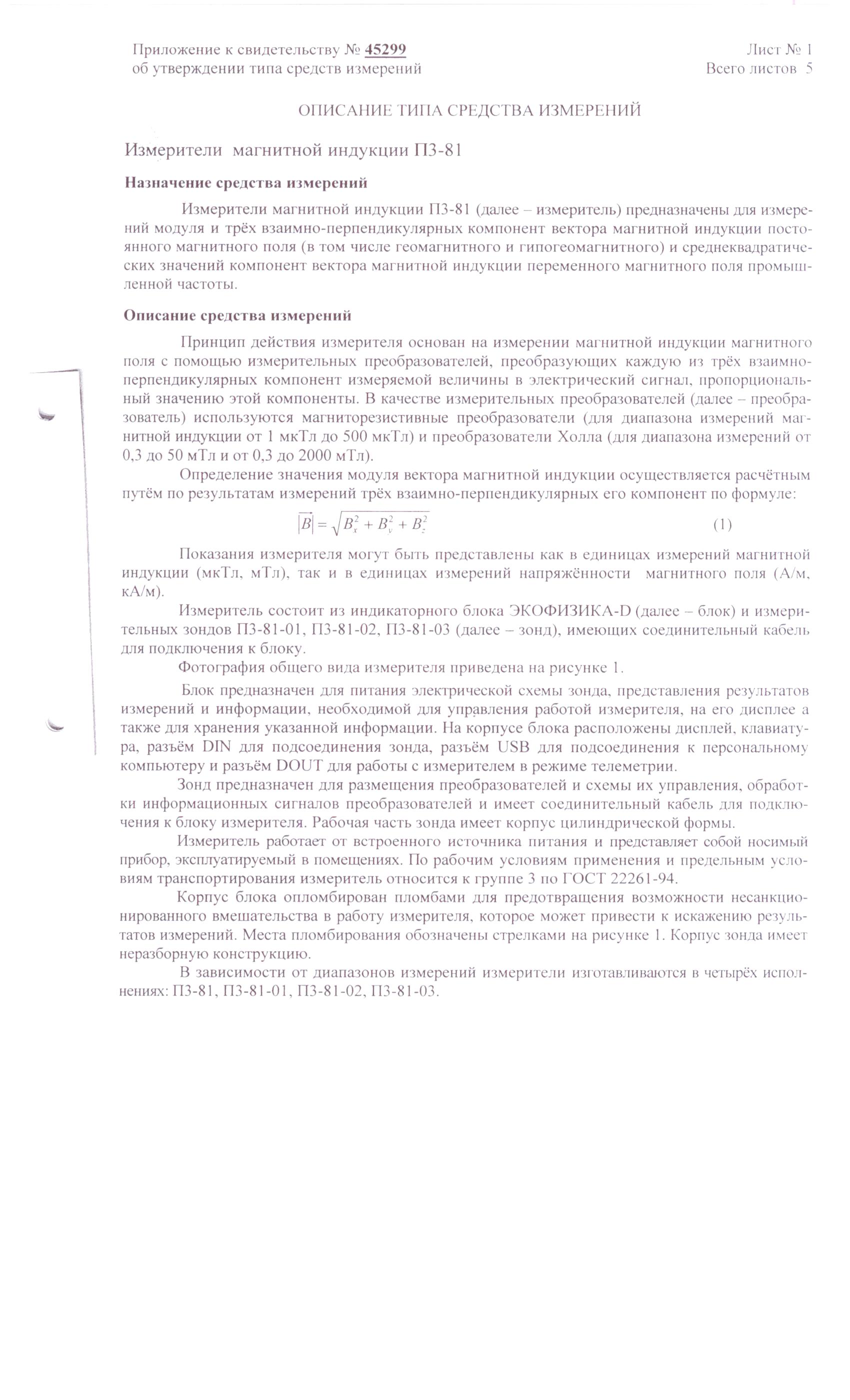 Описания типа средств измерений